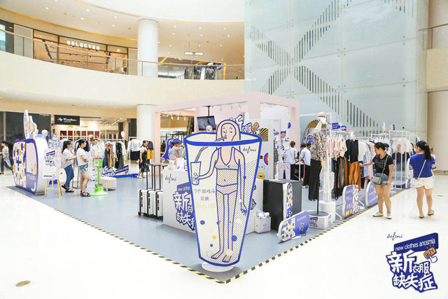 本次展览首次亮相杭州城西银泰城,后续将陆续在杭州西溪印象城,下沙龙湖天街等商场举行。开展首日,即迎来数万人参与,100平的快闪店通过一扭就美、一喝就瘦气泡水以及有趣的文案、互动区吸引许多顾客流连,现场还陈列200余款新品服装,其中EIFINI伊芙丽与电影版《三生三世十里桃花》衍生品合作服装最为吸引了消费者的眼球,杨洋同款的刺绣棒球外套,更是成为首日的销售爆款。