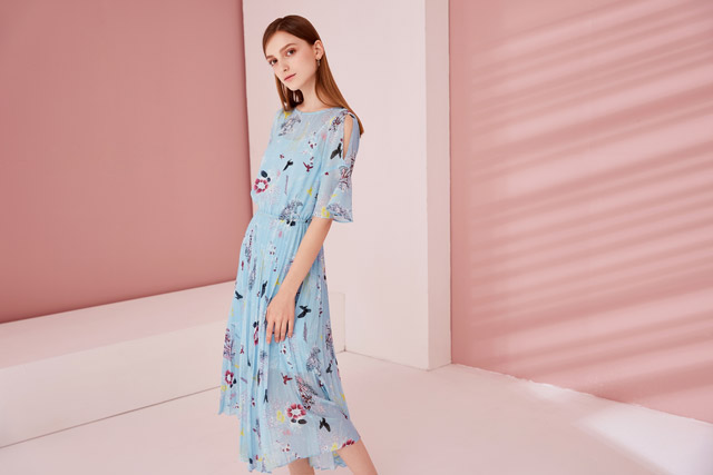 衍生品的推出是品牌对于IP元素从筛选、理解、重建再到推广的过程,这当中需要品牌设计师的设计能力以及团队对于产品开发和推广的能力。伊芙丽设计师表示,在产品的开发上,考虑到《三生三世》画面的柔美基调,设计定稿时将色系定为粉色、蓝色为主,结合今年的女装流行趋势,添加荷叶边飘带和桃花刺绣等女性化元素。